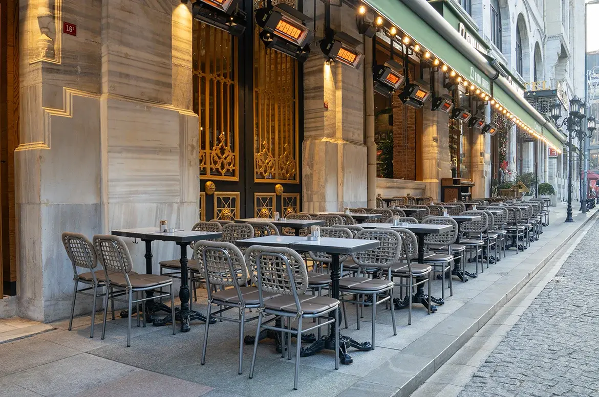 Horeca Contract projelerinde dış mekânları oluşturan; otel bahçeleri, havuz kenarları, kafe ve restoran terasları gibi alanlarda konfor ve dayanıklılığı bir arada sunmak büyük önem taşımaktadır.